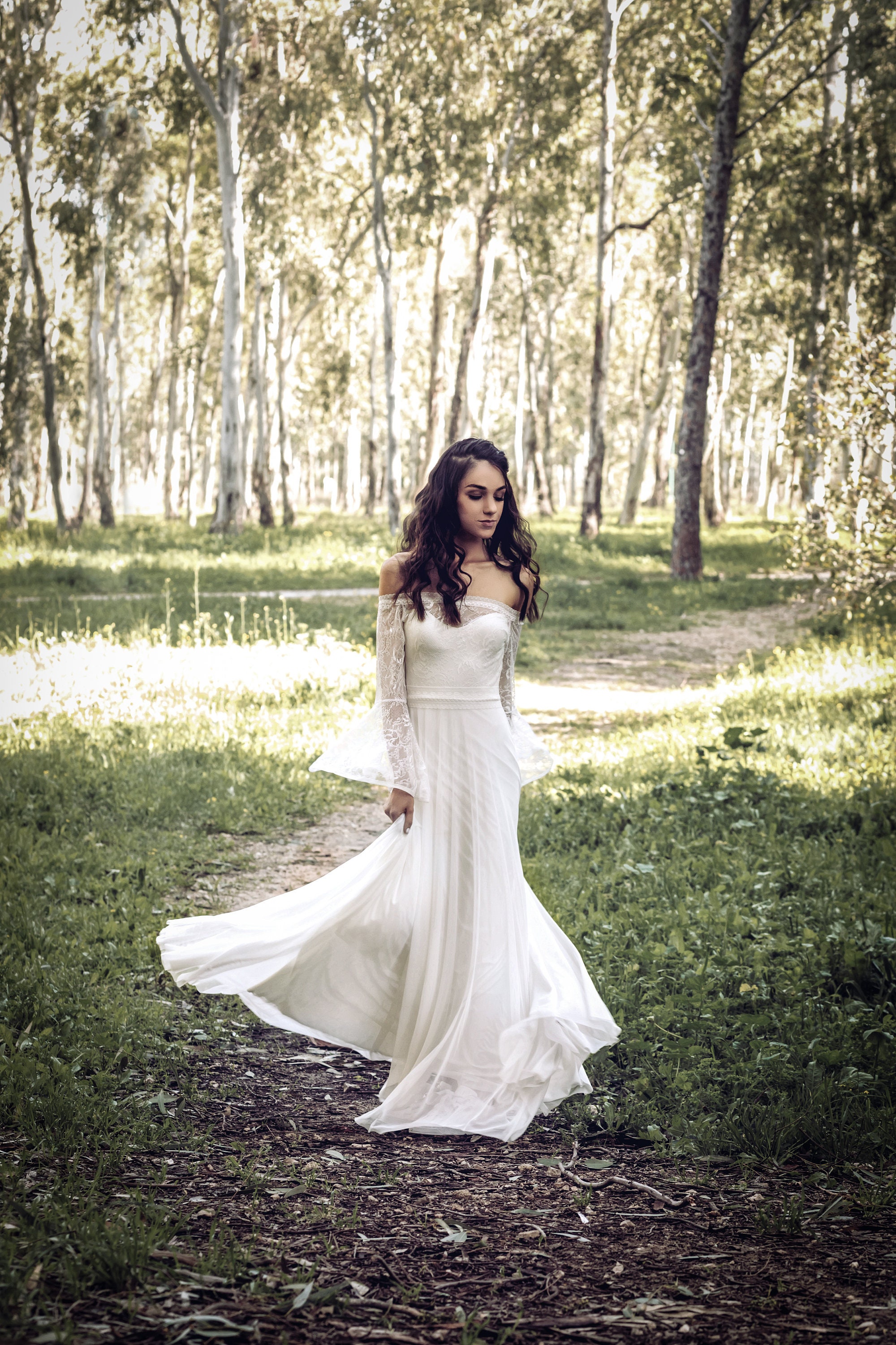 Rustic wedding dress bell sleeves boho wedding dress long ...