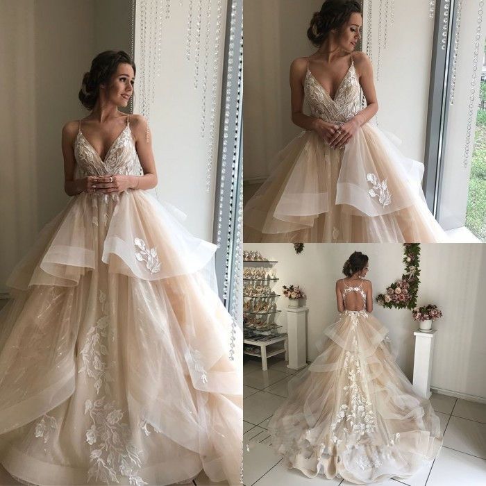 Discount Boho Elegant Wedding Dress Ball Gown Straps Open ...