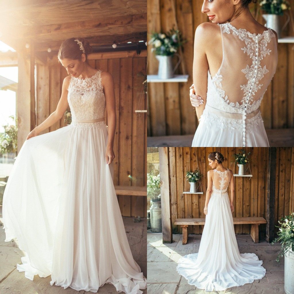 Discount 2018 New Fairy Bohemian Wedding Dress Jewel Sweep ...