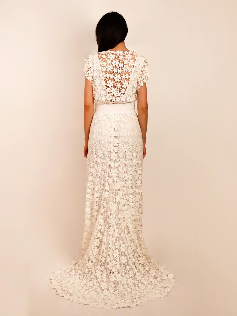 Ivory or White Crochet Lace Bohemian Wedding Dress ...
