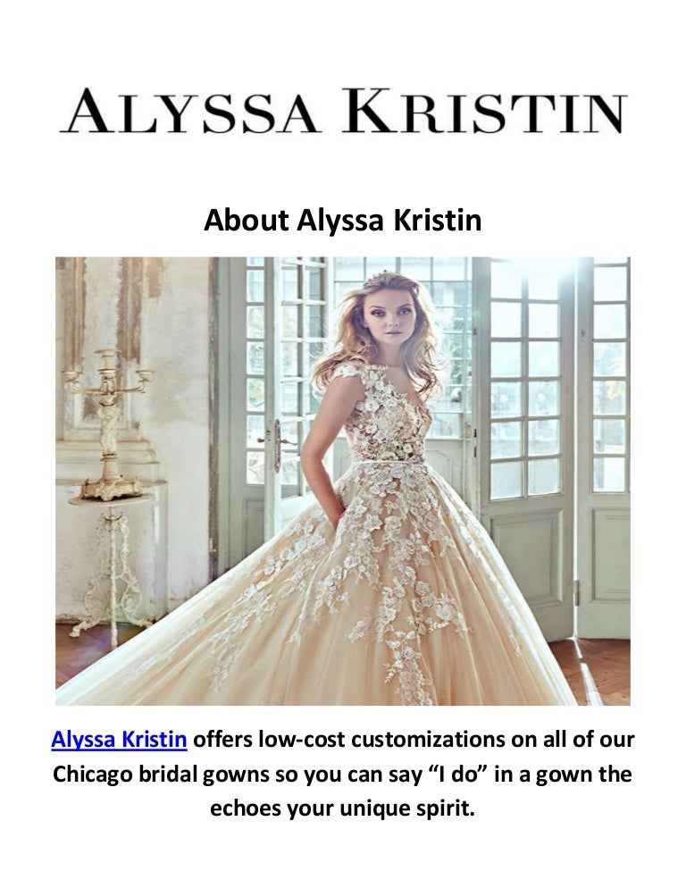 Free: Parking Store Lot. and street parking. We assist brides not only in finding their dream wedding dress but also in guiding them to visualize and embrace their authentic beauty; beauty that is accentuated by finding the perfect dress. Celebrate style at our Chicago flagship bridal salon, gorgeous wedding gowns for the fashionable bride.