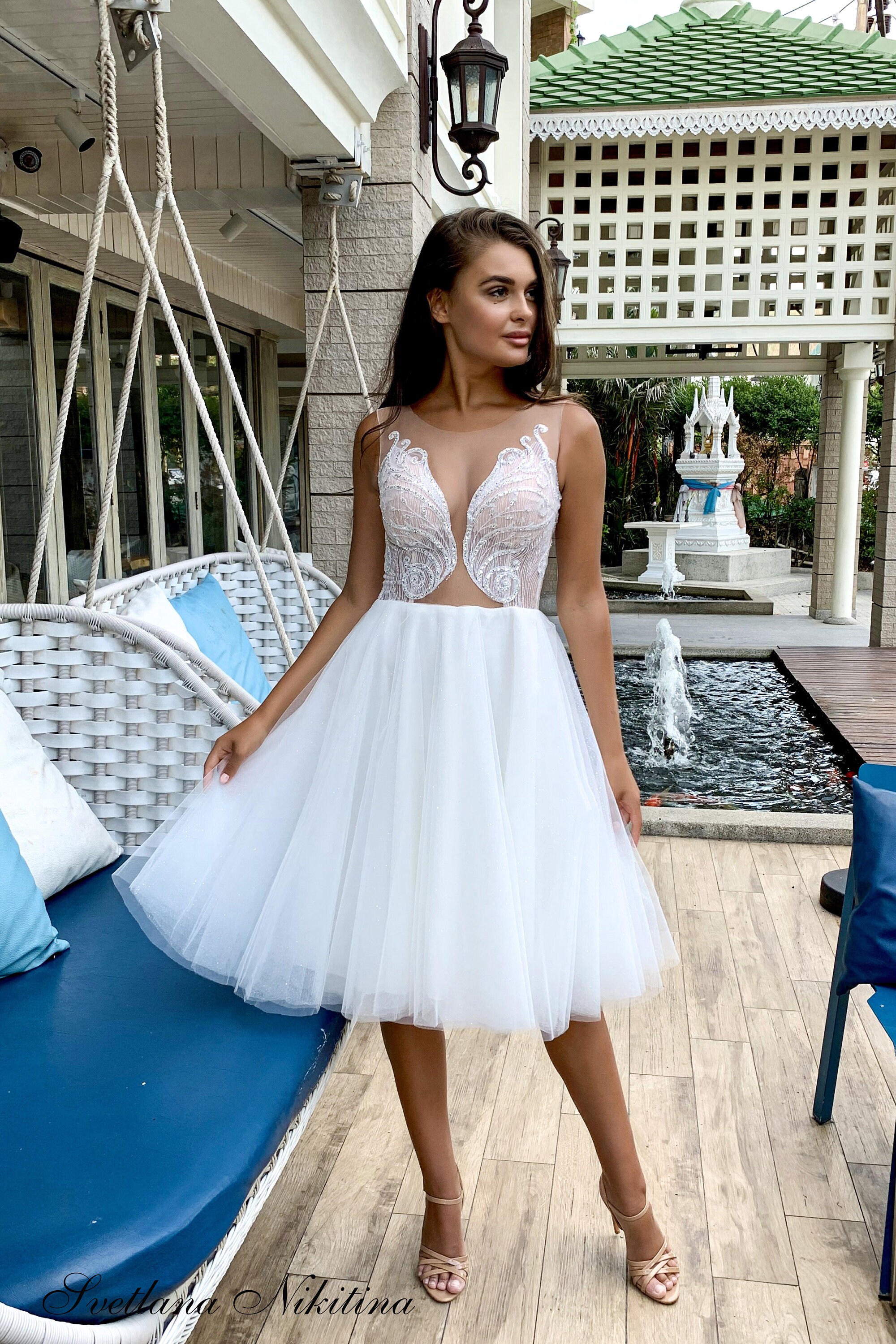 Picture yourself on the beach in one of these gorgeous short wedding gowns! Wedding dress for receptions with open back without corset. Keep the traditional bridal white look—with a twist!