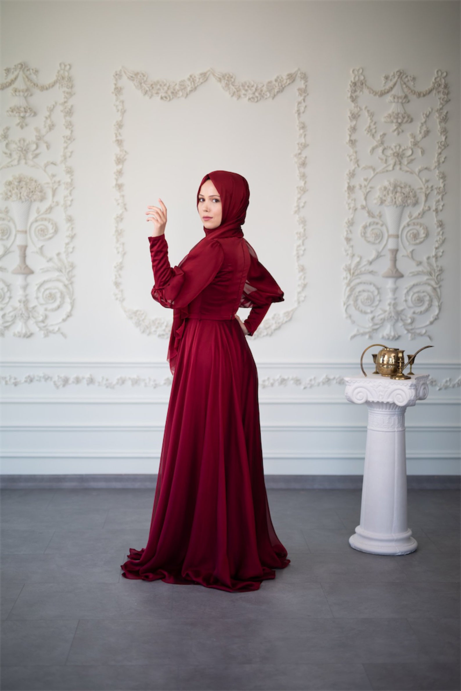 Burgundy Muslim Wedding Dress Long Dress Evening Gown Long | Etsy