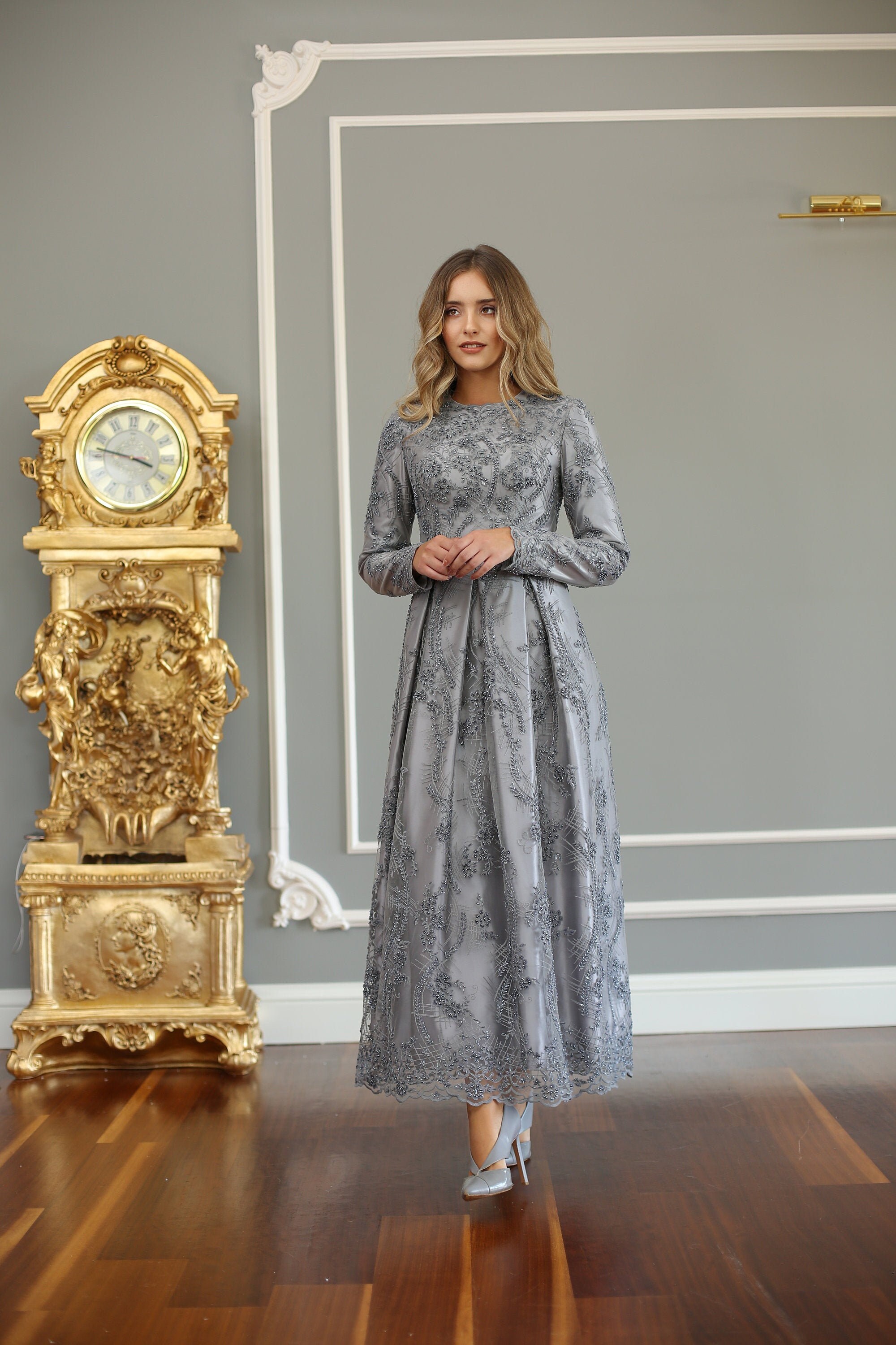 Elegant Evening Dress Muslim Wedding Dress Embroidered | Etsy