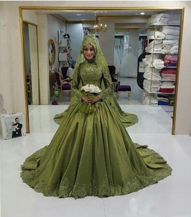 Discount Robe De Mariage 2017 Green Muslim Wedding Dress Long Sleeve ...