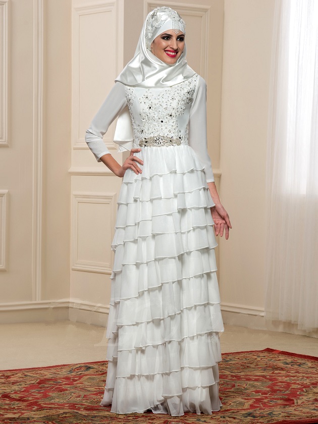 Traditional Muslim Bridal Gown with Long Sleeves.