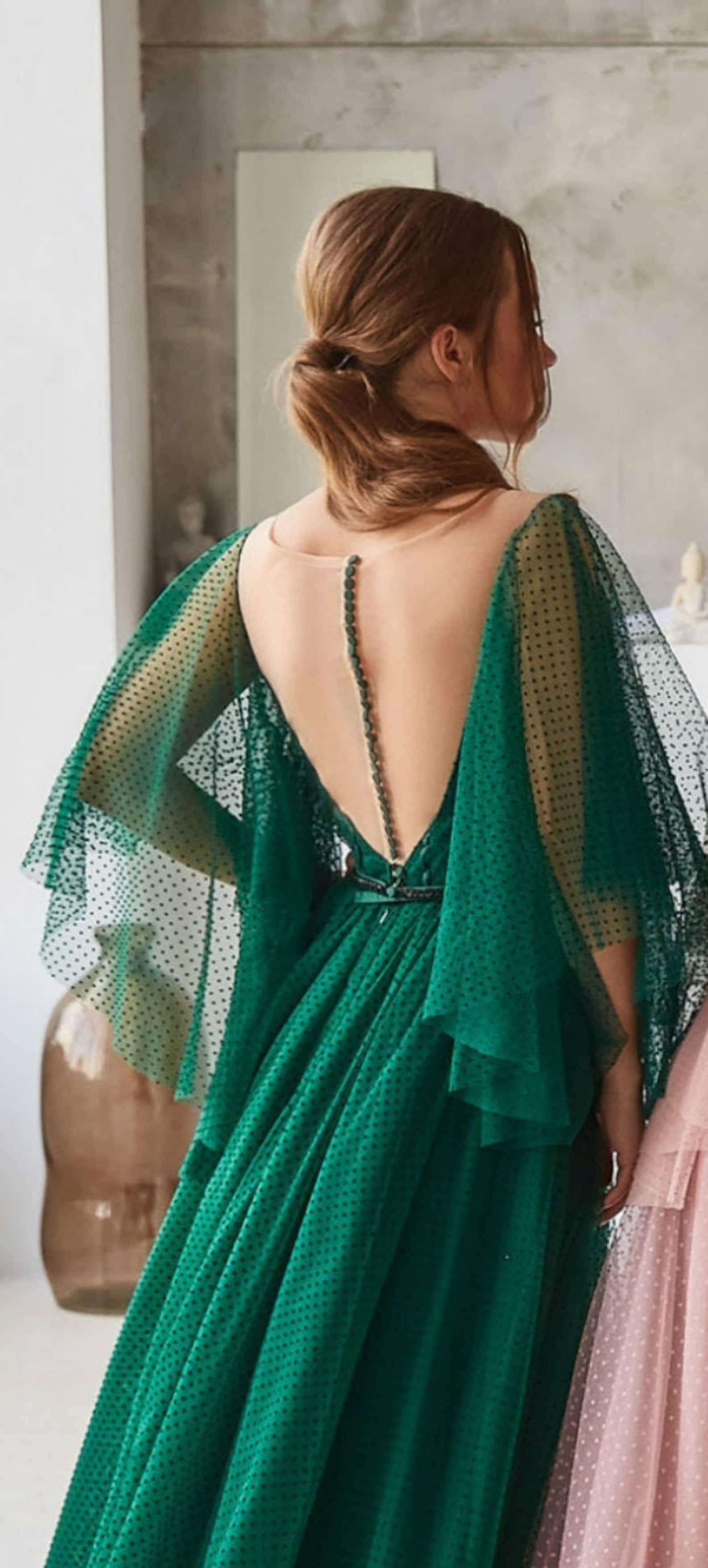 Favorite. a moody green wedding dress with wide illusion straps, a sweetheart neckline and a layered tulle skirt for a moody fall bride. Green wedding dresses can be divided into mint green, dark green, Rachel green, and emerald green, most of which are mature. It can meet the display needs of brides of all ages, taking into account simplicity and gorgeousness.