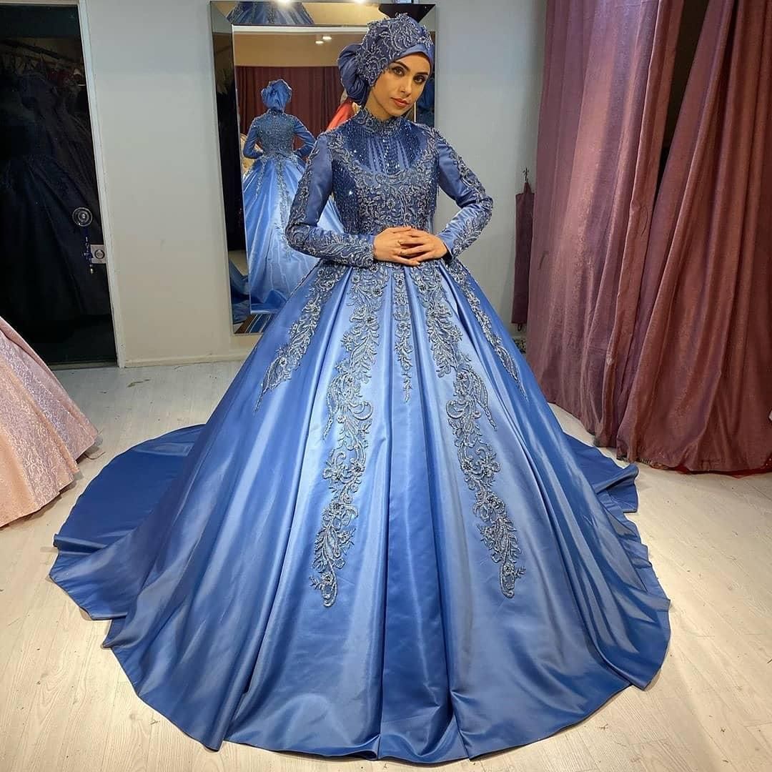 White Muslim High Neck Wedding Dress Satin Long Sleeve. Muslims generally observe modest Muslim wedding dresses for marriage, but the variety of styles and colors have changed the tradition cloths of marriage. DHgate.com provide a large selection of promotional navy blue muslim wedding dress on sale at cheap price and excellent crafts.