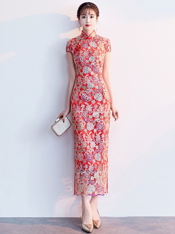 Our cheongsam dresses show breathtaking femininity and sophistication that is appropriate for any occasion. Narrow your Qipao/Cheongsam wedding dress search with our on page filters. Floor-Length Red Embroidery Flowers Women Qipao Elegant Bride Wedding Party Gown Traditional Chinese Evening Dress Satin Skirt.